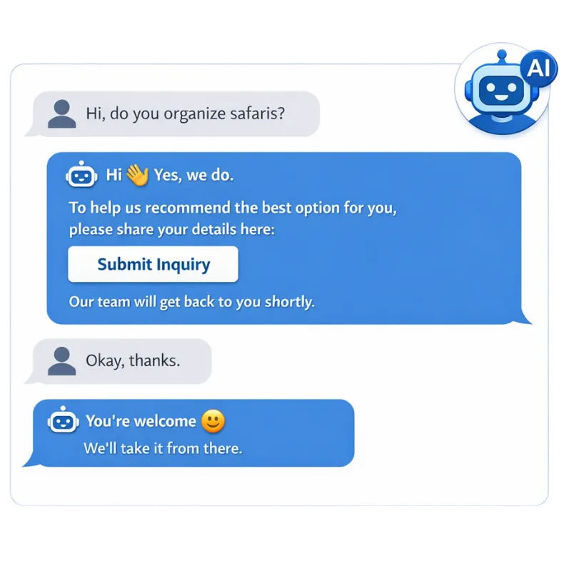 It helps you capture travel inquiries, respond faster, and follow up automatically using WhatsApp and email—so you convert more bookings without extra staff.